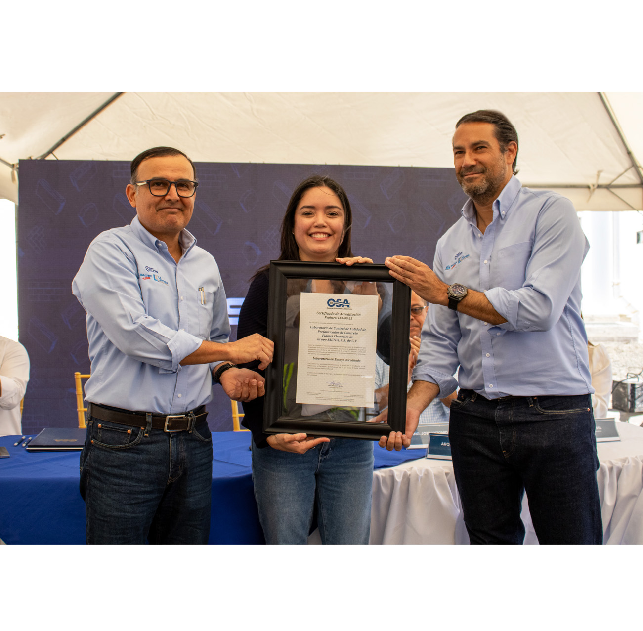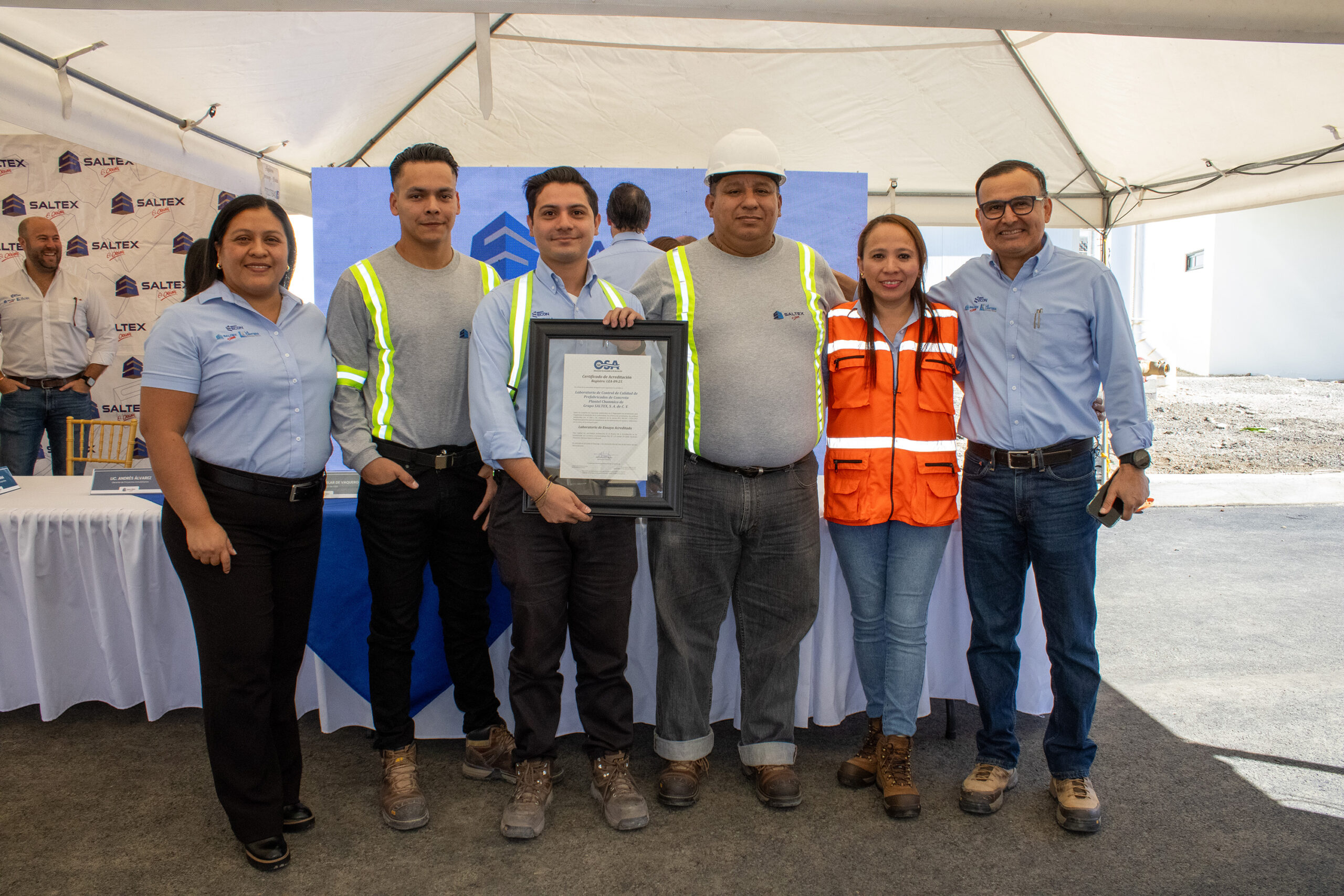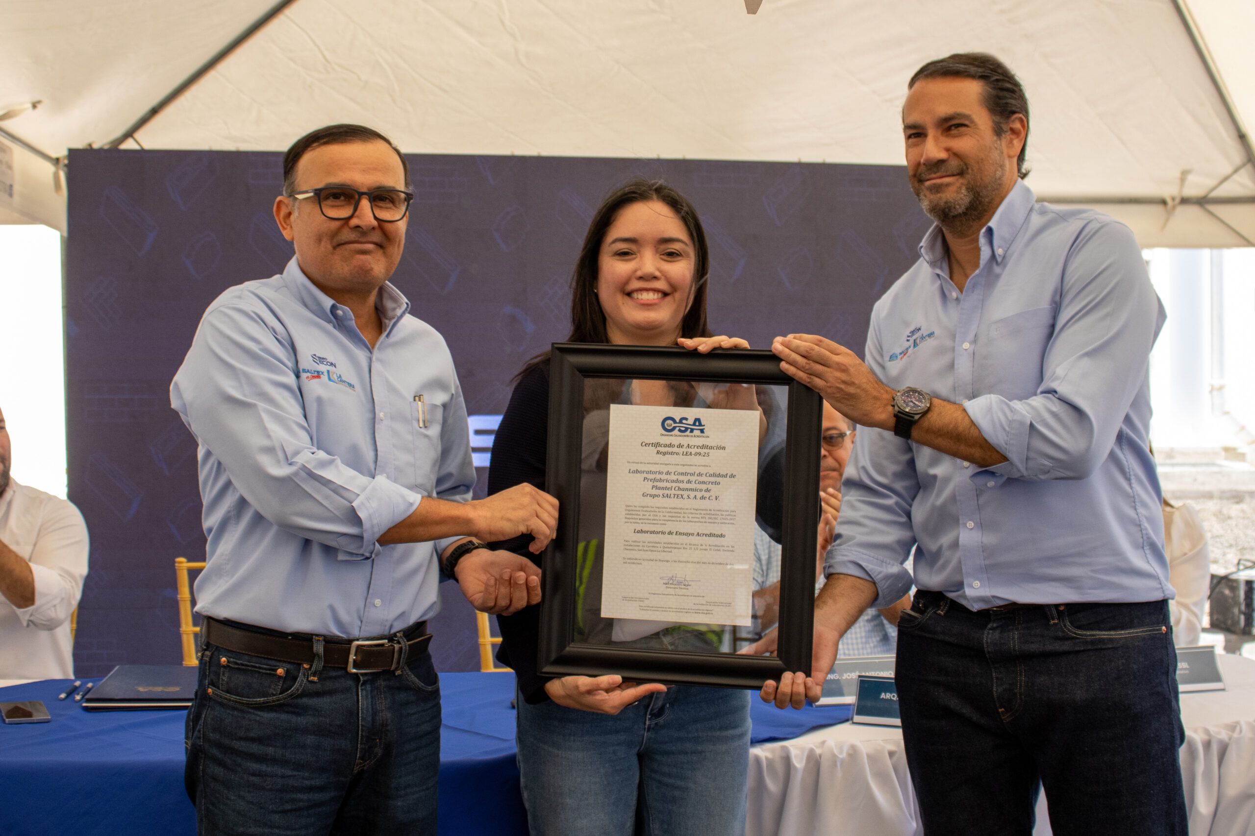 Laboratorio de Control de Calidad de Prefabricados de Concreto Plantel Chanmico de Grupo SALTEX, S. A. de C. V, recibió de parte del Organismo Salvadoreño de Acreditación (OSA), su certificado de acreditación, que avala su compromiso con los más altos estándares de calidad según la norma ISO/IEC 17025:2017, Requisitos generales para la competencia de laboratorios de ensayo y calibración.