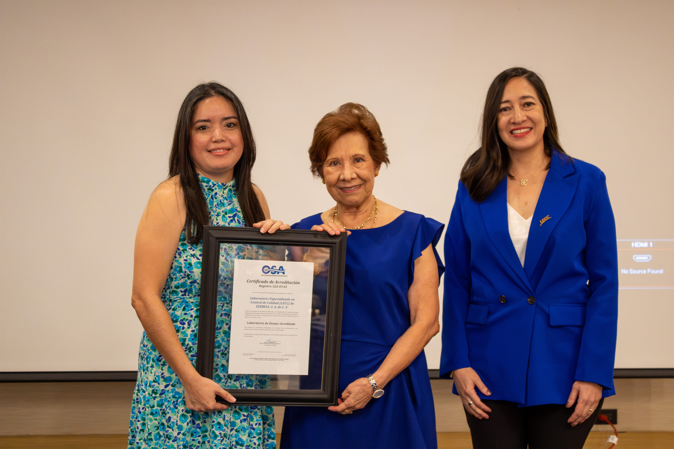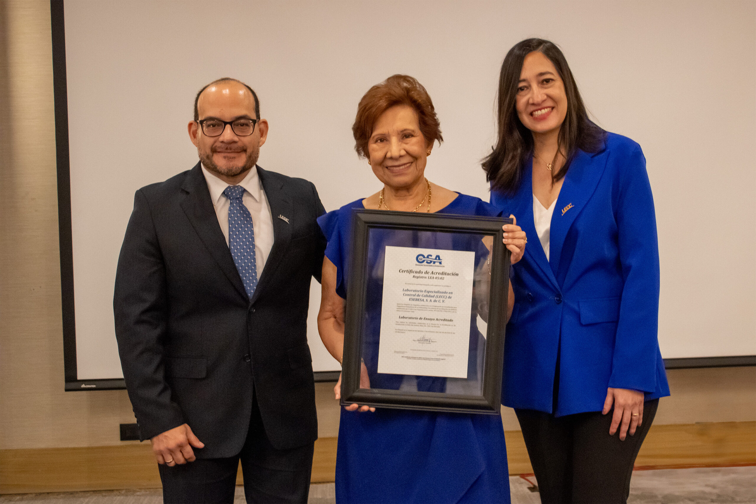 Durante la ceremonia, la Directora General, Dra. Elizabeth Banegas, junto con la Directora Administrativa, Lcda. Ligia Salazar, recibieron el alcance de renovación, el cual fue entregado por la Ing. Alejandra Avelar, Directora Técnica del OSA, evidenciando la competencia técnica del laboratorio.